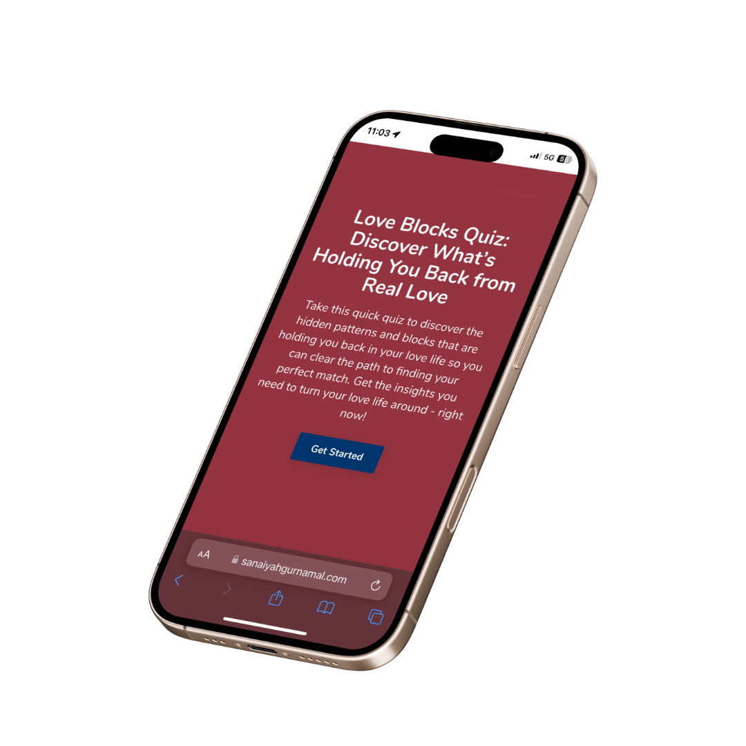 Take our quick Love Blocks Quiz to discover what's keeping you from your dream relationship. This isn’t just any quiz—it’s a stepping stone to understanding and overcoming the hidden challenges blocking your path to the kind of love that's for keeps. You’ll identify your love blocks and gain the insights needed to break free from these obstacles, empowering you to attract and keep the love you truly deserve.